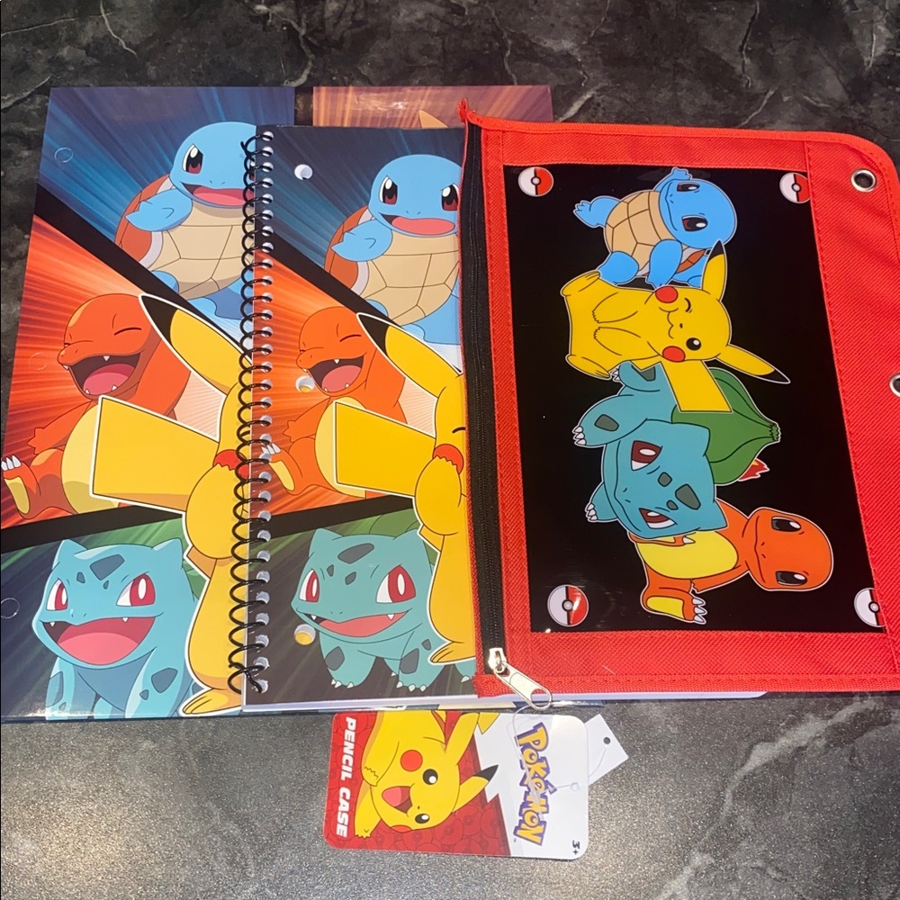 New With Tags Pokémon Bundle Pokémon Pencil Pouch Lined Notebook 2 Pocket Folder (Has Holes If Needed)