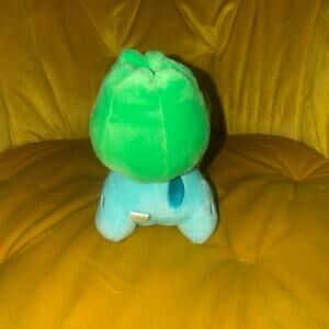 Authentic Pokémon Center Bulbasaur plush, approximately 4-5 inches tall, in excellent used-excellent condition (EUC), new without original tags. This official plush features vibrant colors and soft material, perfect for Pokémon fans and collectors alike. Made in China, dated 2016, with official Nintendo/Game Freak licensing. No stains or tears, just minor signs of gentle handling and storage. A must-have small collectible for your Pokémon plush collection or a great gift for fans!