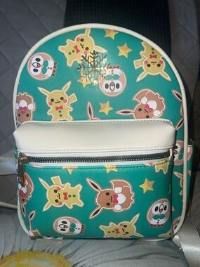 Pikachu, Eevee, and Rowlet are here to celebrate the holidays! The Pokémon trio appear in adorable gingerbread designs all over this mini backpack. Features side pockets, two zipper compartments, an interior zipper pocket, and adjustable shoulder straps.