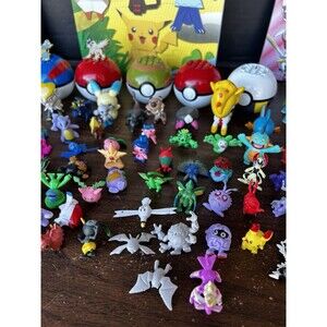 The Pokémon Lot includes over 100 figures of various sizes, 5 Pokeballs with figures, books, and pins. The action figures are from various brands and feature the popular character Pikachu. Some figures in the lot larger and more detailed for an enhanced play experience. This collection would be perfect for any Pokémon fan looking to expand their collection with a variety of characters and accessories.