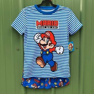 Pokémon & Mario Graphic Print Tee & Shorts Sleep 2, 2-Piece Sets Size M