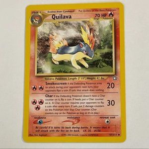 Set of 6 Pokémon cards, all from Neo Genesis set. Includes: Quilava (47), Seadra (48), Snubbull (74), Super Scoop Up (98) & Pokemon March