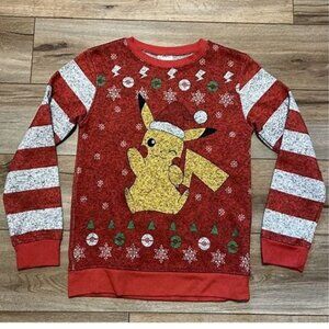 Youth Pikachu Pokemon Christmas Holiday Sweatshirt Size Large Red Fair Isle Kids. Pokémon. Red. Sweatshirts