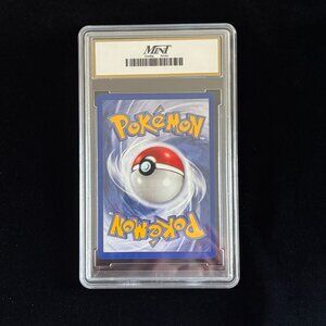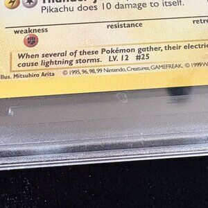 I have included photos of a flashlight being shined through the graded card (photo 6), a 1996 Japanese Pikachu No.025 Old Back Base Set card (photo 7), and a regular English Pikachu unlimited edition Base Set card (photo 8). It appears that the graded card lets more light through, similar to the Japanese card. The regular Pikachu Base Set card in photo 9 does not let as much light through, and also appears darker than its graded counterpart (photo 9). Photo 10 shows all three cards together.