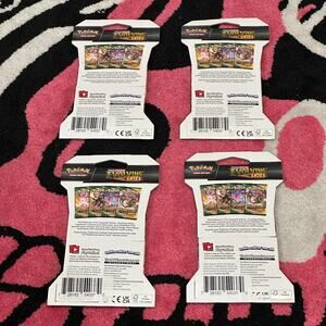 Official Pokémon TCG Sword & Shield – Evolving Skies (SWSH07) Sleeved Booster Pack Art Bundle. This listing is for a set of 4 sleeved boosters, each with different pack artwork designs. Factory sealed and authentic. Evolving Skies is one of the most popular Sword & Shield sets, featuring powerful Dragon-types, Eeveelutions, and chase cards like Umbreon VMAX and Rayquaza VMAX. A must-have for sealed collectors or anyone chasing alternate arts.