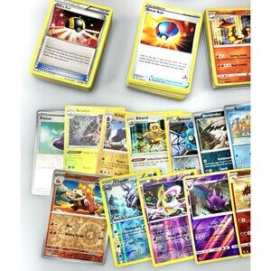 Pokémon TCG trading cards stored in a collectible tin. The cards come from various recent sets and include a wide range of Pokémon, Trainers, and Energy. This is a great way to grow a collection, start a new one, or enjoy the excitement of sorting through a large assortment of cards. The cards are in overall good condition and provide plenty of variety for casual players, collectors, or anyone looking for a fun mix at an affordable price. The collectible tin adds an extra touch for storage or display, making this lot both practical and enjoyable.