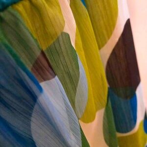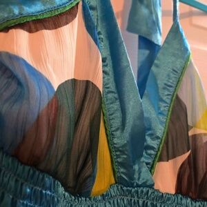 Pokodot halter dress size small. Halter dress, very lovely colors (the first photo portrays more accurate shades to real life colors) turquoise trim is satin.