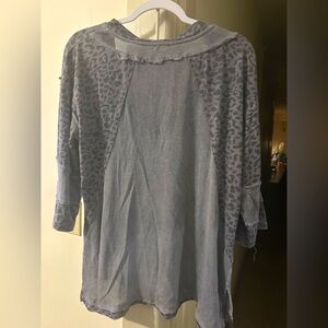 This is a lightweight shirt with animal print on the sleeves it’s oversized you can hang it off your shoulder with a tank top underneath