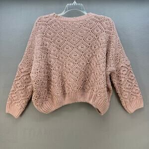 Pol Anthropologie Sweater Women's L Rose Pink Loose Weave Oversized Crop Preppy