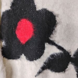 Soft, cozy, and artsy — this Pol oversized sweater features a bold black + red flower graphic on an ivory fuzzy eyelash knit. A statement piece with plenty of character, perfect for laid-back boho and indie-inspired outfits.