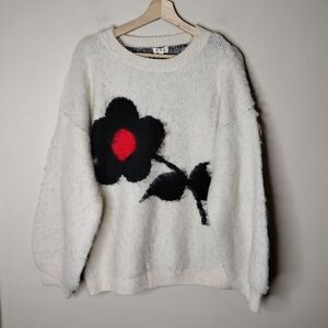 Pol Chunky Eyelash Knit Sweater | Oversized Floral Graphic Pullover