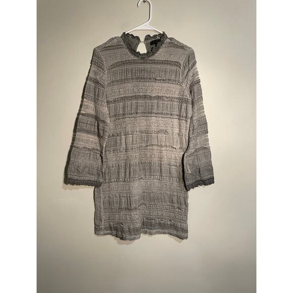 Pol Gray Lace Boho Long Sleeve Mini Dress Size Medium