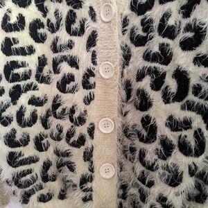 Pol Leopard Print Fuzzy V-Neck Cardigan Medium Cream and Black