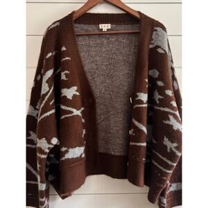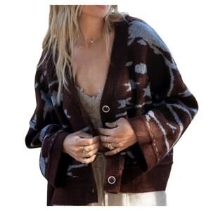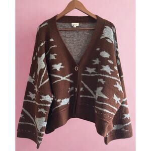 Pol Oversized Cropped Stars Cardigan | Brown | Women’s L | Cozy Fall Vibes