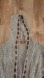 Diamond eyelet pattern open knit with hood. Light gray-ish color. Replaced fit. Long sleeves. Patched elbows.