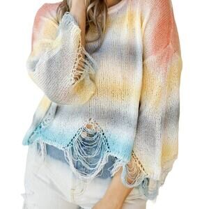 Pol Rainbow Sherbert Rugged Deconstructed Distressed Lightweight Sweater SZ M