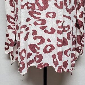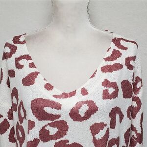 POL Raspberry Leo Lightweight V-neck Loose Fit Side Slit Knit Sweater.