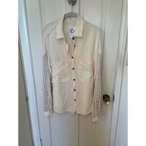 Pol Size S Boho Oversized distressed shirt with Knit Sleeves. Lakelynn Top