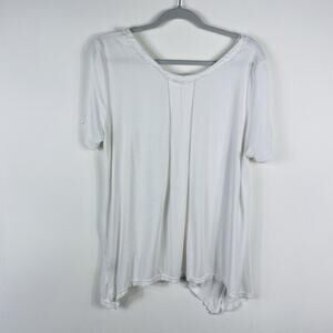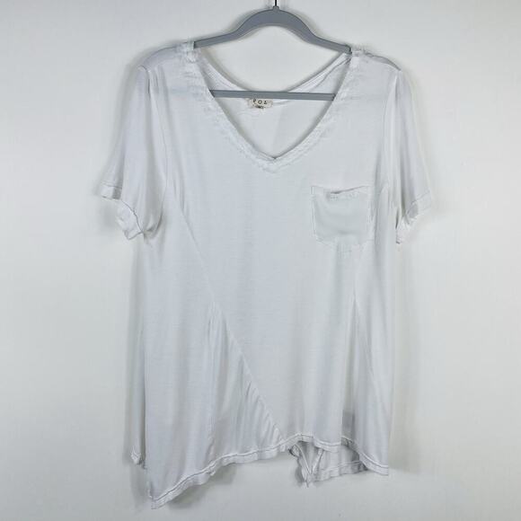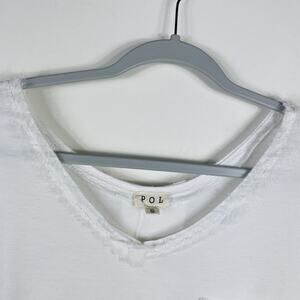 Pol Size Small Frayed Edge V-Neck Short Sleeve Pocket Tee Top White