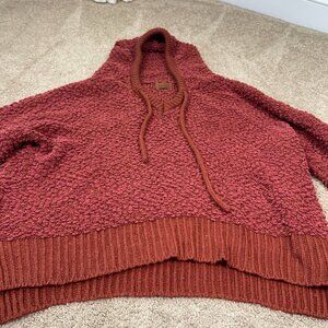 Pol Sweater Womens S Terracotta Orange Hooded Bohemian Oversized Slouchy Cropped