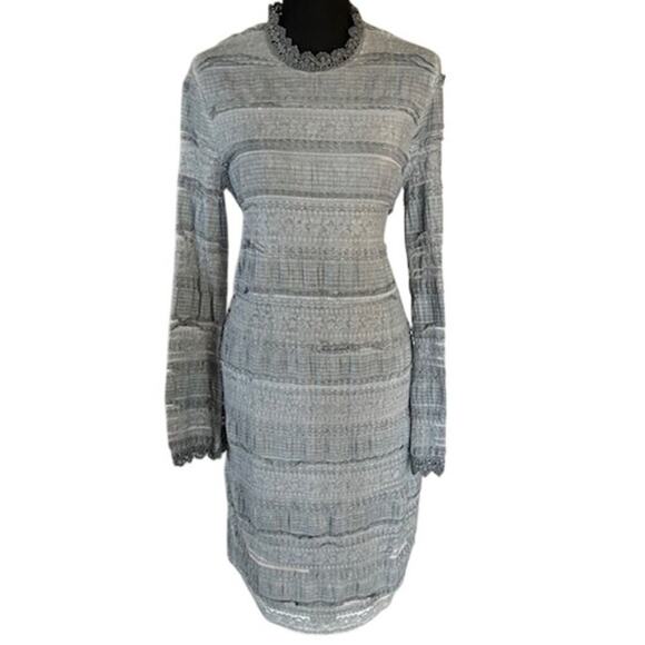 Pol Textured Slate Long-Sleeve Midi Dress – Boho Chic, size Medium