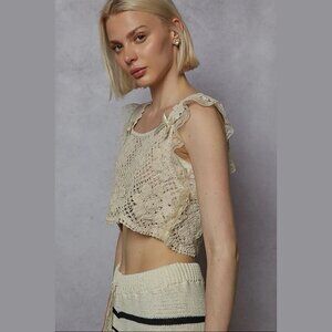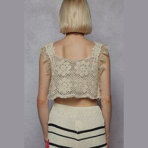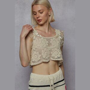 Pol Women Square Neck Lace Crochet Cropped Top One Size Ivory Bohemian Hippie