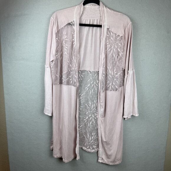 Pol Women’s Lace Sheer Sz S Open Cardigan Boho Peasant Pink Oversized