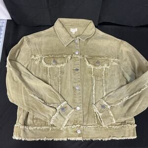 Pol Women's Trucker Style Size S Army Green Button Up Shacket Oversized w/Fray