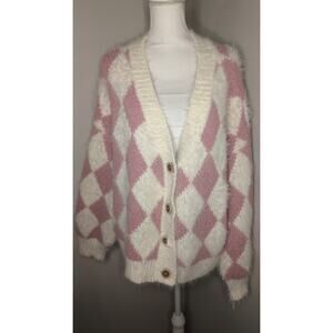🧥 POL Fuzzy Pink Argyle Sweater (LG)