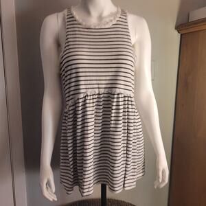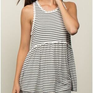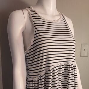 Pol striped babydoll tank lace trim racerback coastal nautical casual top L
