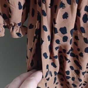 New with tags. Midi length. Lined skirt. Smock stretch top. 3/4 sleeves with elastic cuff. Subtle v neck. Pockets.