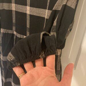 Polagram Black Tan Plaid Embroidered Puff 3/4 Sleeve Modest Midi Dress (Copy)
