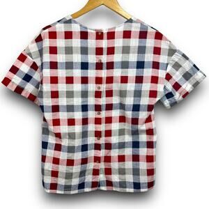 Polagram Checkered Short Sleeve Shirt Button Back Blouse Top Casual Size Small