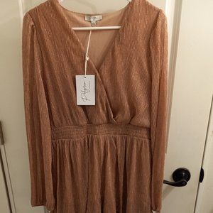 Elegant, formal maxi length dress. Brand new with tags! Shimmery blush pink with gold. Bishop sleeves. Nursing friendly. Size large. 51 inches long. Bust 19. Bought from My Sister's Closet.