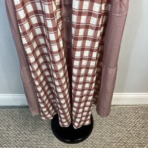 Polagram Dress size Medium Brown Ivory Plaid Midi Prairie Peasant Modest Church