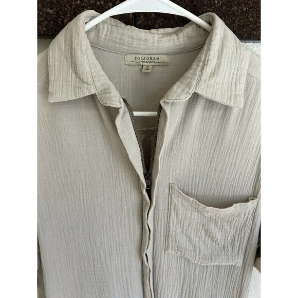 Polagram Gray Gauze Shirt Cardigan Jacket SZ S. Condition is Pre-owned. Shipped with USPS Ground Advantage.
