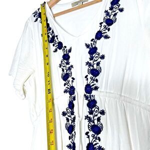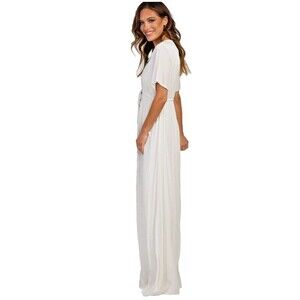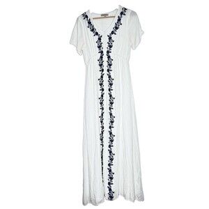 Polagram Ivory embroidered chinched floral short sleeve tie maxi dress size S