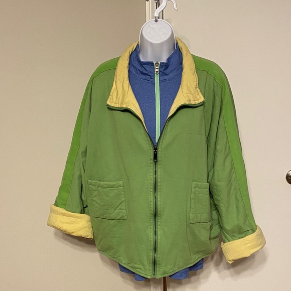 NWT! Polagram cotton quilted puffer jacket in line green with yellow lining, oversized, size large. Two inner and outer pockets. Zip front. Pit to pit 54” length 26” Sharp lighter weight jacket!