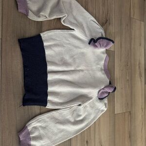 Polagram Knit Ruffle Sweater Gray Purple Preppy Size Medium