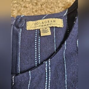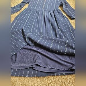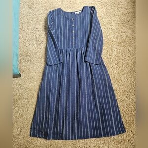 Polagram Linen-Look (its is polyester and cotton) Navy Striped Midi Dress, Size Small.