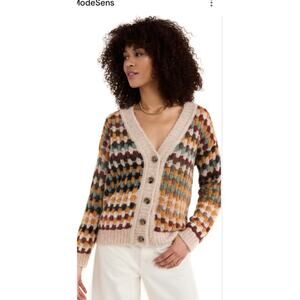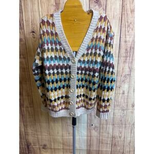 Polagram MultiColored Loose Knit Button Up Cardigan Women's Size S