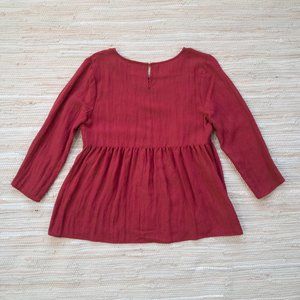 Polagram Red Long Sleeve Peplum Top with Folk Inspired Floral Embroidery Size M