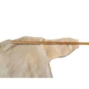 Polagram Sweater Women's Large Beige Floral Knitted Ribbed Long Sleeve Pullover.