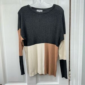 Polagram grey tan beige ribbed long sleeve lightweight sweater women's small