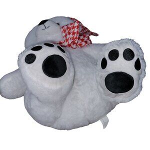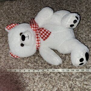 Polar Bear 17 inch Plush Teddy White Red Gingham Bow Ears Stuffed Animal Toy