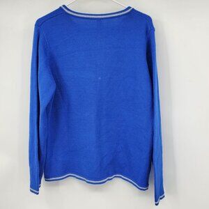 blue embroidered Christmas knit