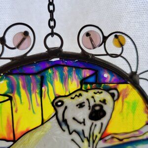 wall hanging, window decor, sun catcher, polar bear, collectible, vintage, retro, gift, winter scene,