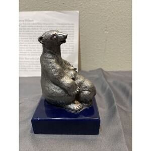 Polar Bear with Cubs Pewter Figure with Marble Base Henry Wilson