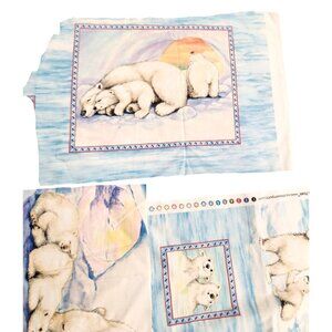 This adorable polar bear quilt panel and fabric square bundle brings the serene, icy Arctic straight to your sewing projects. Featuring a variety of charming polar bear family portraits with cubs on a crisp blue, sky-resembling background, bordered in geometric accents, this fabric collection is both cozy and visually striking. The bundle contains pre-cut and clean fabric pieces from a high-quality cotton weave with smooth, vibrant printing. It's perfect for dynamic quilt-making, creative home decor ideas, or themed sewing crafts! • 100% premium-quality cotton for durability and ease of sewing. Still enough left for a quilt top.