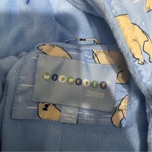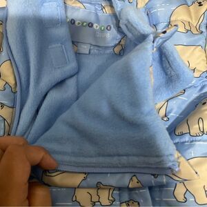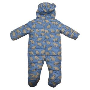 Polar Bears all over print baby blue lined cozy snowsuit Size 12M.